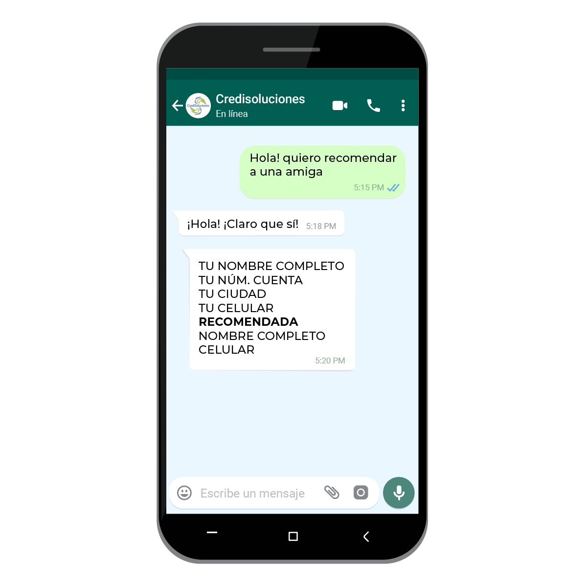 - Los datos de las recomendadas serán recibidos únicamente a